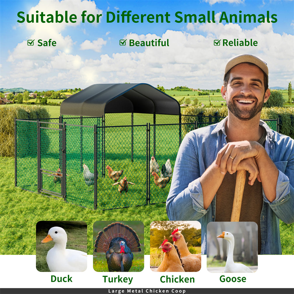 【Semi-open Design with Free Access】The total height of our chicken coop is 156cm and the height of the door is consistent with the height of the fence, the uncapped design makes it easier to enter, exit and clean the chicken coop,a considerate and convenient feeding door is designed below the door, allowing you to enter and exit freely without having to bend down to clean the chicken coop