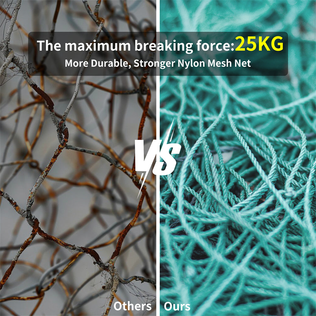 【All-Round Breeding Net & Nail Fixation】Made of premium nylon material,with good durability and impact resistance, is not easy to wear and age, long service life, moreover, it has high tensile strength, able to withstand large forces without breaking or deforming, especially in high-strength environment, the ground nails we provide make the cage firmly embedded in the soil to protect the poultry