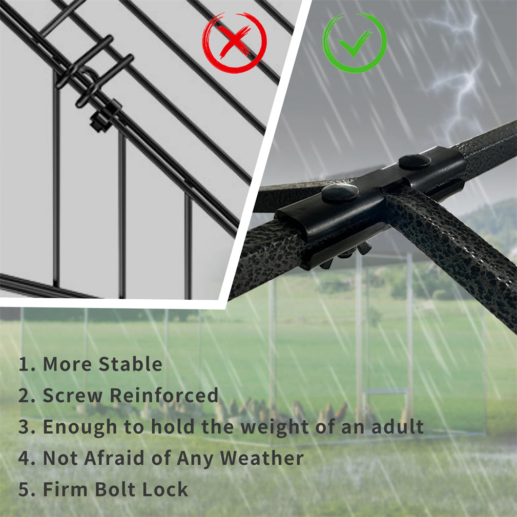 【New Type Screw Connection】Adopting high-standard production technology and constantly upgrading products, we abandoned the fragile buckle design and adopted a more stable screw connection installation method, it can effectively avoid the problem that the snap-on installation method is fragile and easy to collapse,adorable and no afraid of wind and rain, our poultry fence can be locked to protect your poultry from theft
