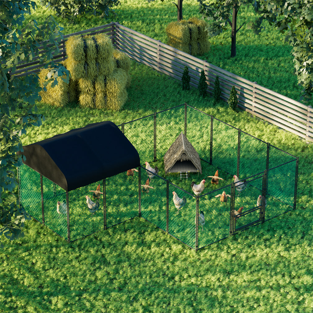 【With Waterproof Cover】 Poultry are timid and easily frightened, they like coolness, are afraid of heat and rain, whenever the weather changes, they will habitually run back to their nests, our hen house are made of high-grade 210D Oxford cloth , with SPF 50+,waterproof,anti-static and high strength, can better protect poultry from wind and rain
