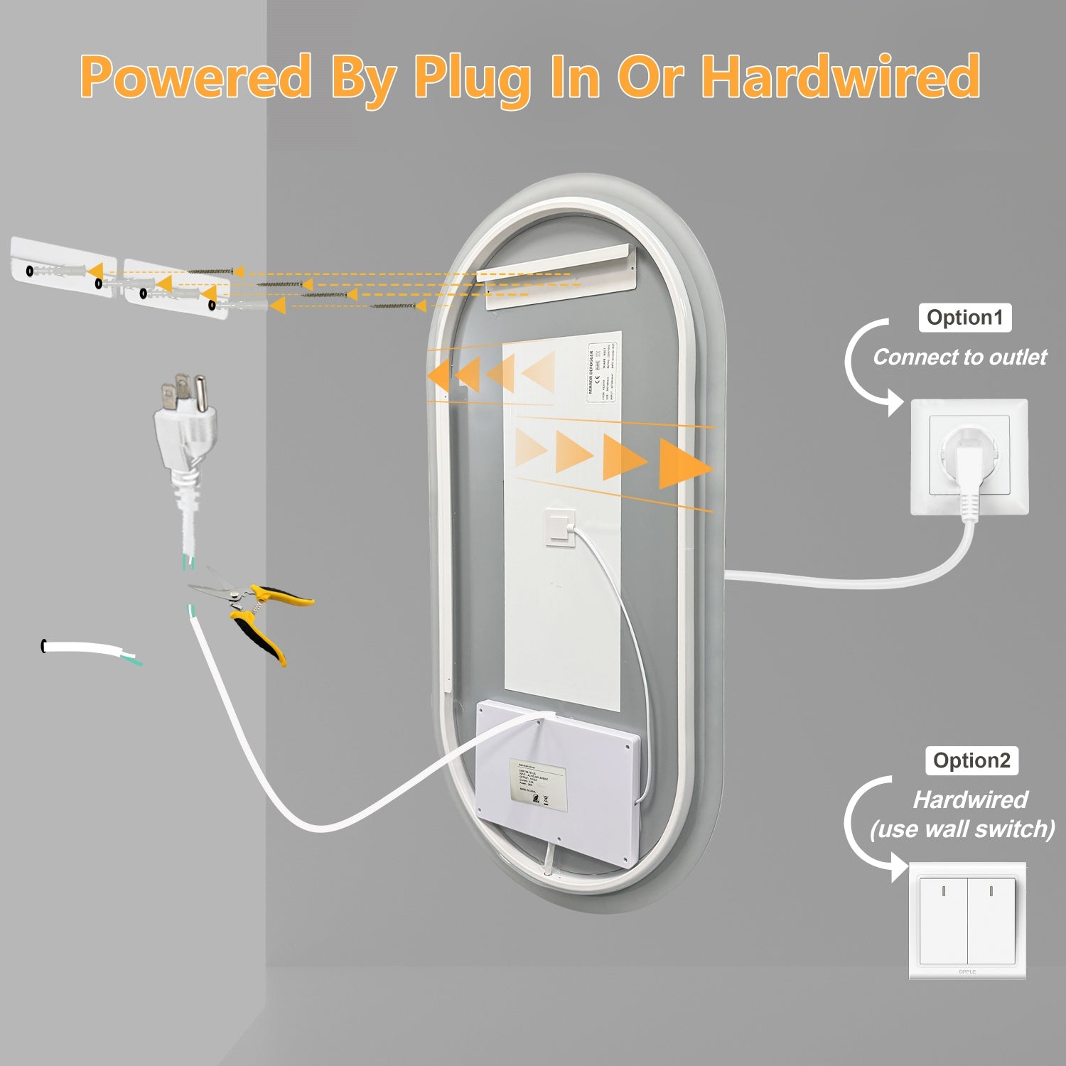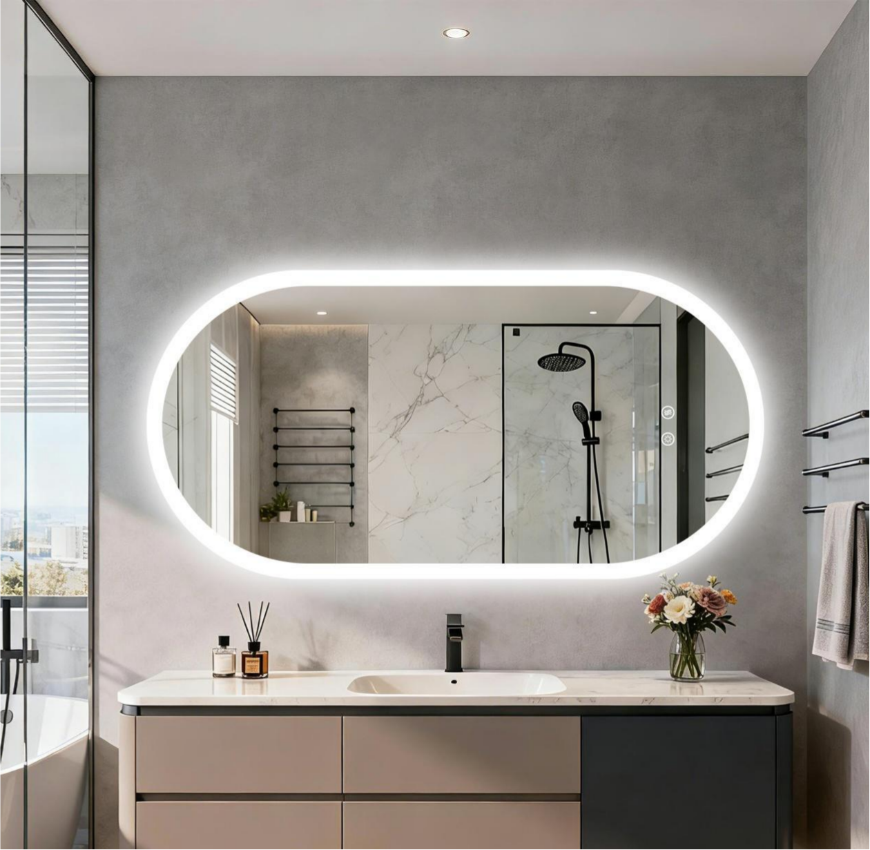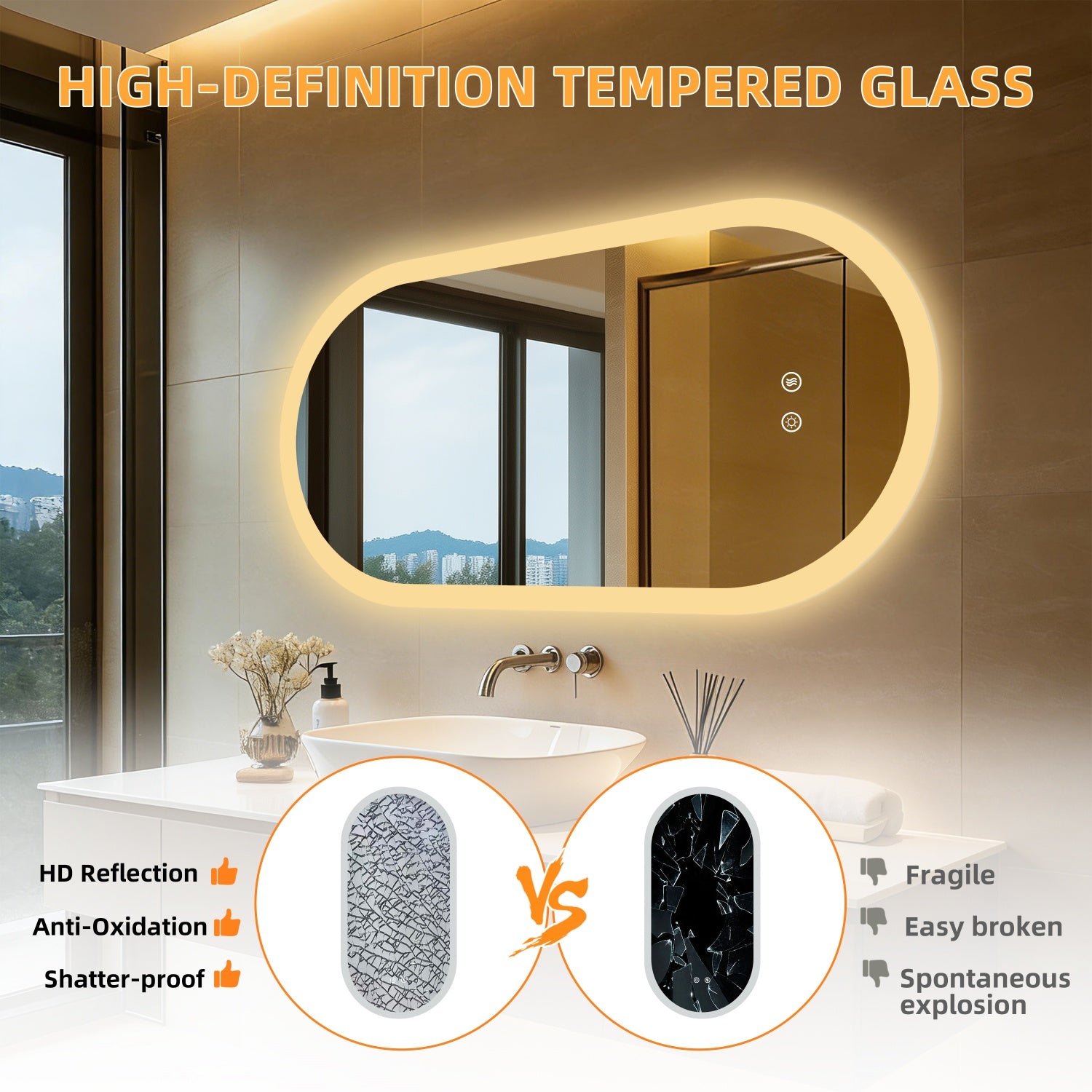 Long Oval LED Bathroom Mirror Backlit Vanity Makeup Mirror Antifog