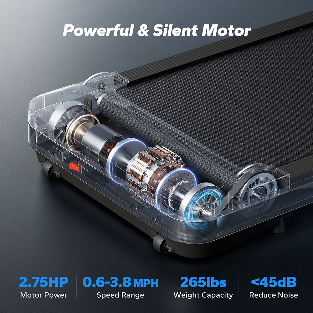- The walking pad treadmill walking treadmill with a 2.75HP near-silent motor (under 40dB - quieter than a fridge hum), this walk pad under-desk treadmill supports 120kg users with 1-6.1km/h smooth pacing, the walking treadmill's heat-resistant motor adapts to local climates, while built-in noise dampening lets you clock steps during work calls or apartment workouts without bothering flatmates, commercial-grade durability meets neighbour-friendly design