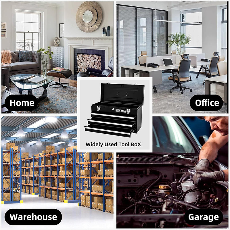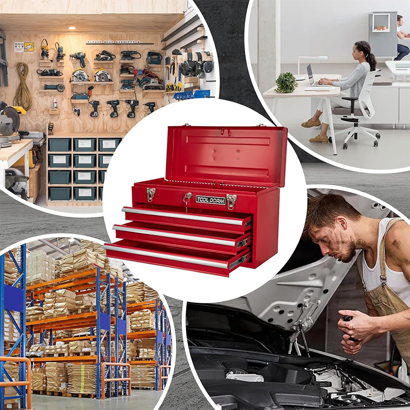 - Tool chest with 2-4 drawers and a top box to hold a variety of tools. Multiple storage spaces are convenient to classify the tools you have and organize it very well. Each drawer has EVA mats as protective liner