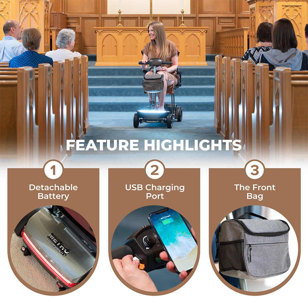 METRO MOBILITY Foldable 250W 24V 12/20Ah Electric Mobility Scooter
