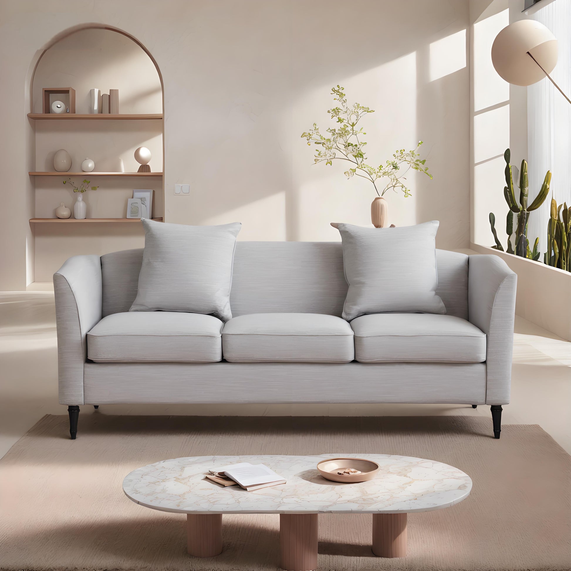 Minimalist Beige Fabric 3-Seater Sofa with 2 Pillows