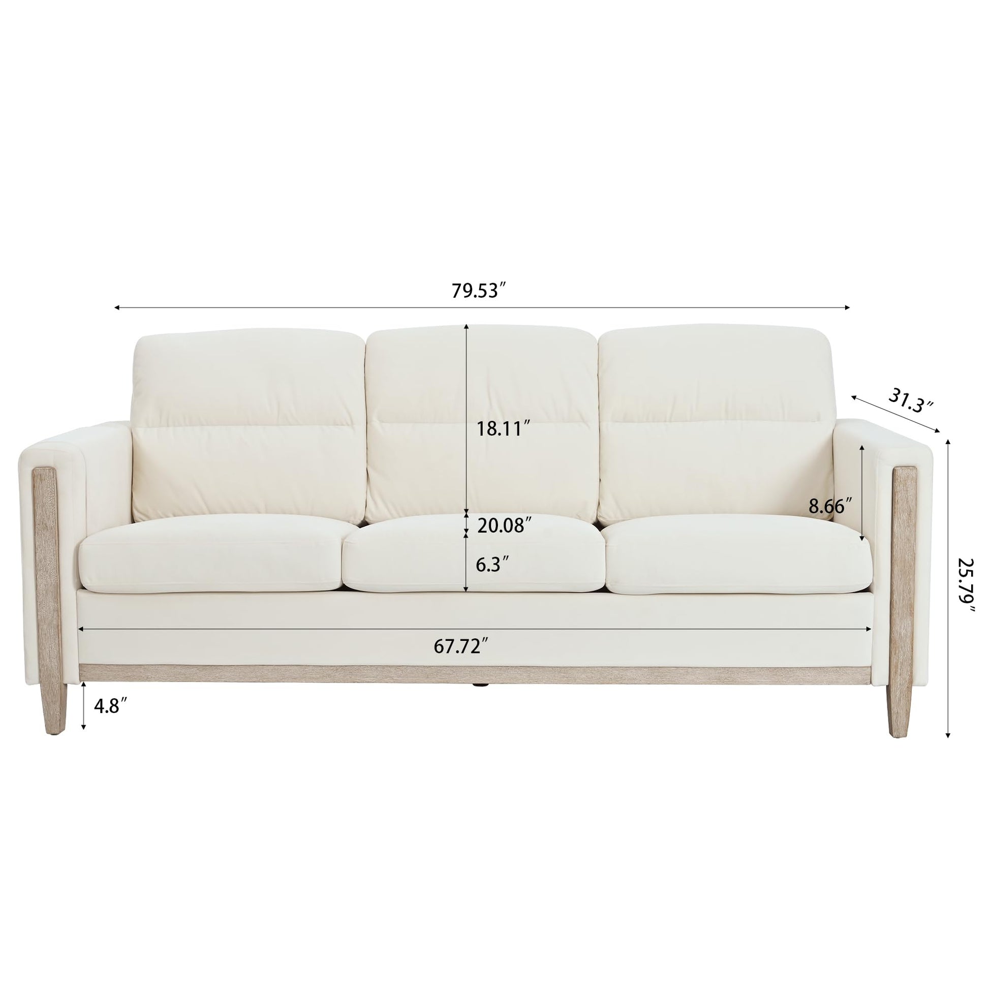Modern Beige/Grey Comfortable 3-Seater Fabric Upholstered Sofa with Solid Wood Frame for Living Room