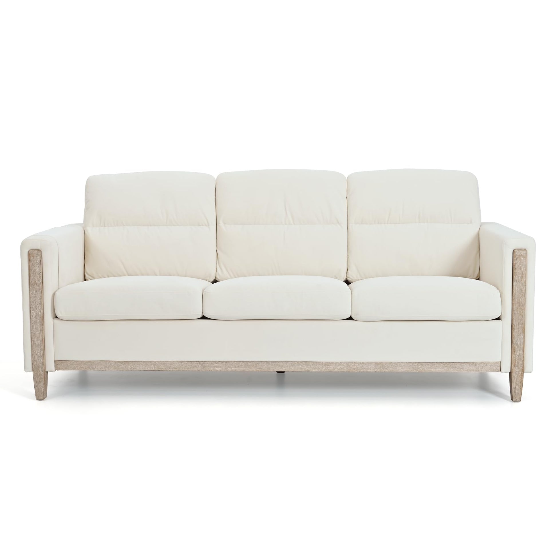 Clean lines and cushion-wrapped wooden armrests give this sofa a sleek, unified look that fits modern decor.