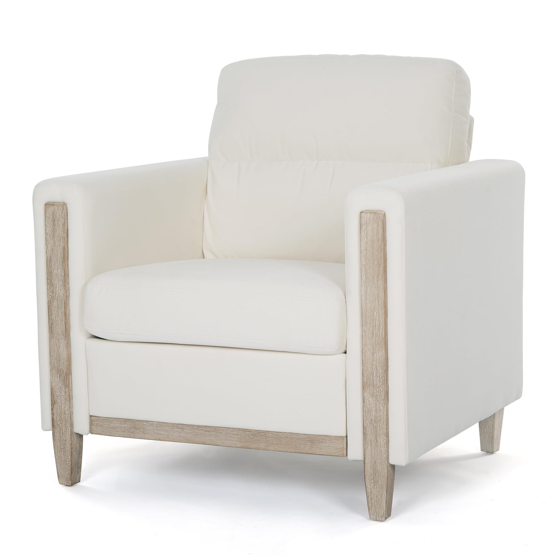 Modern PU Leather & Velvet Upholstered Single Seater Accent Chair with Rubber Wood Legs
