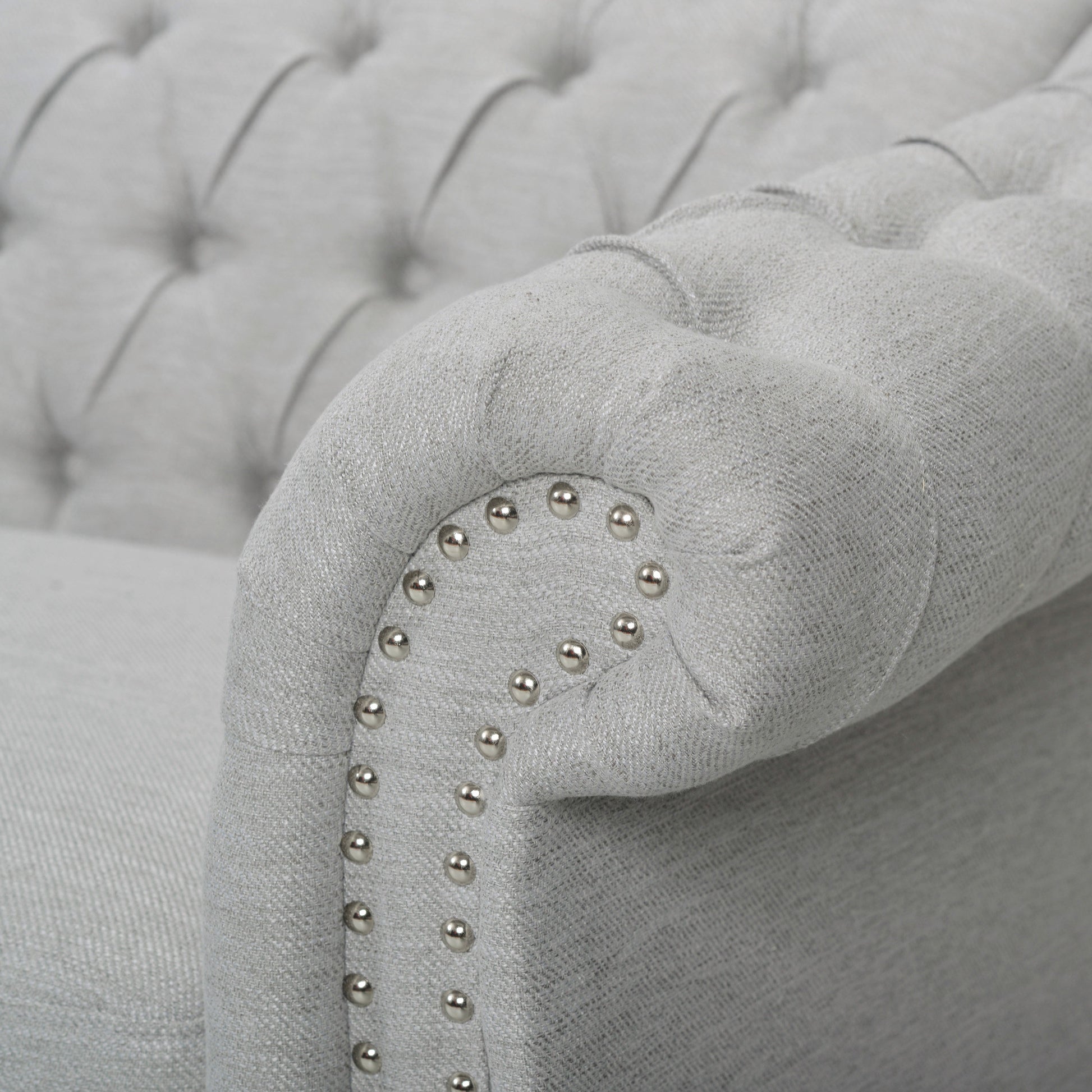 Modern Style Cloud Gray Button Tufted Upholstered Fabric Sofa