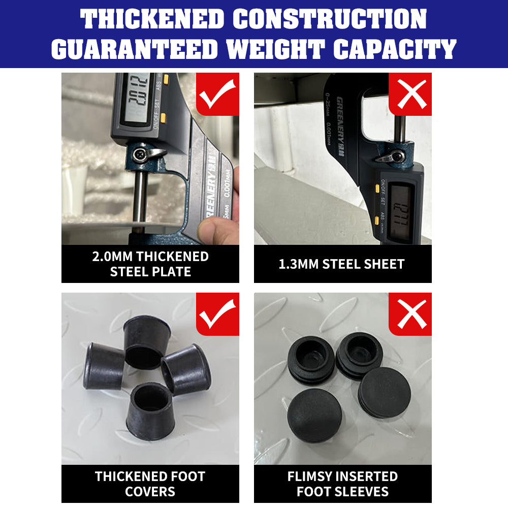 Constructed from cold-rolled alloy steel with reinforced welding points, this platform ladder is built to last. The thickened steel plate and stable design provide excellent strength and durability, supporting up to 300kg. For added peace of mind, the sturdy design ensures superior safety while in use.