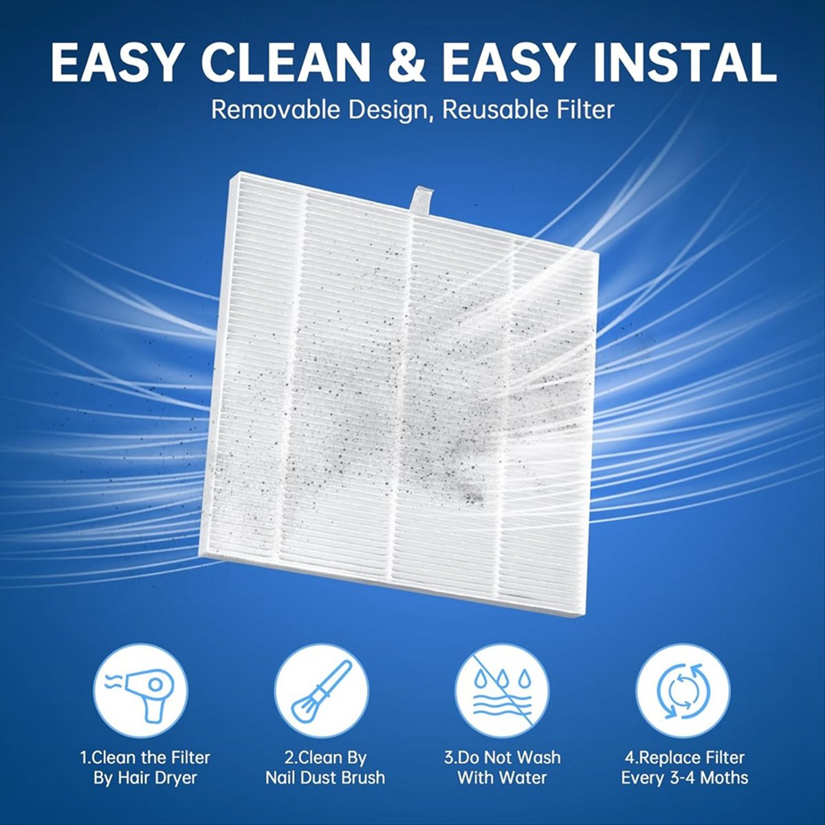 Removable, Reusable Fine Filter: The easy-to-clean, removable filter lasts up to 2-3 months with regular use. Simply dust it off with a dust brush or hair dryer-no need for frequent replacements.