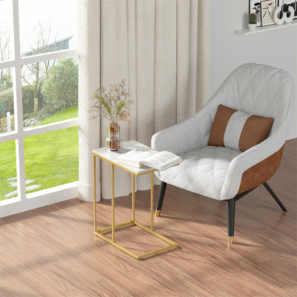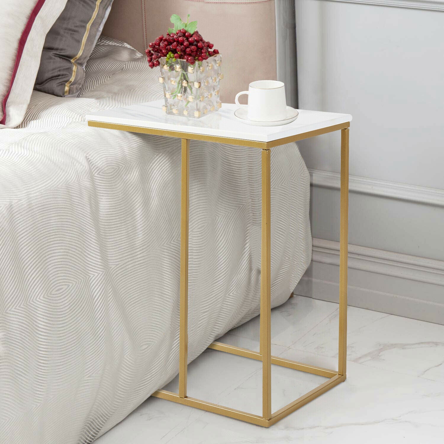 Solid Real Marble End Table Gold Metal C Shaped Frame Coffee Table