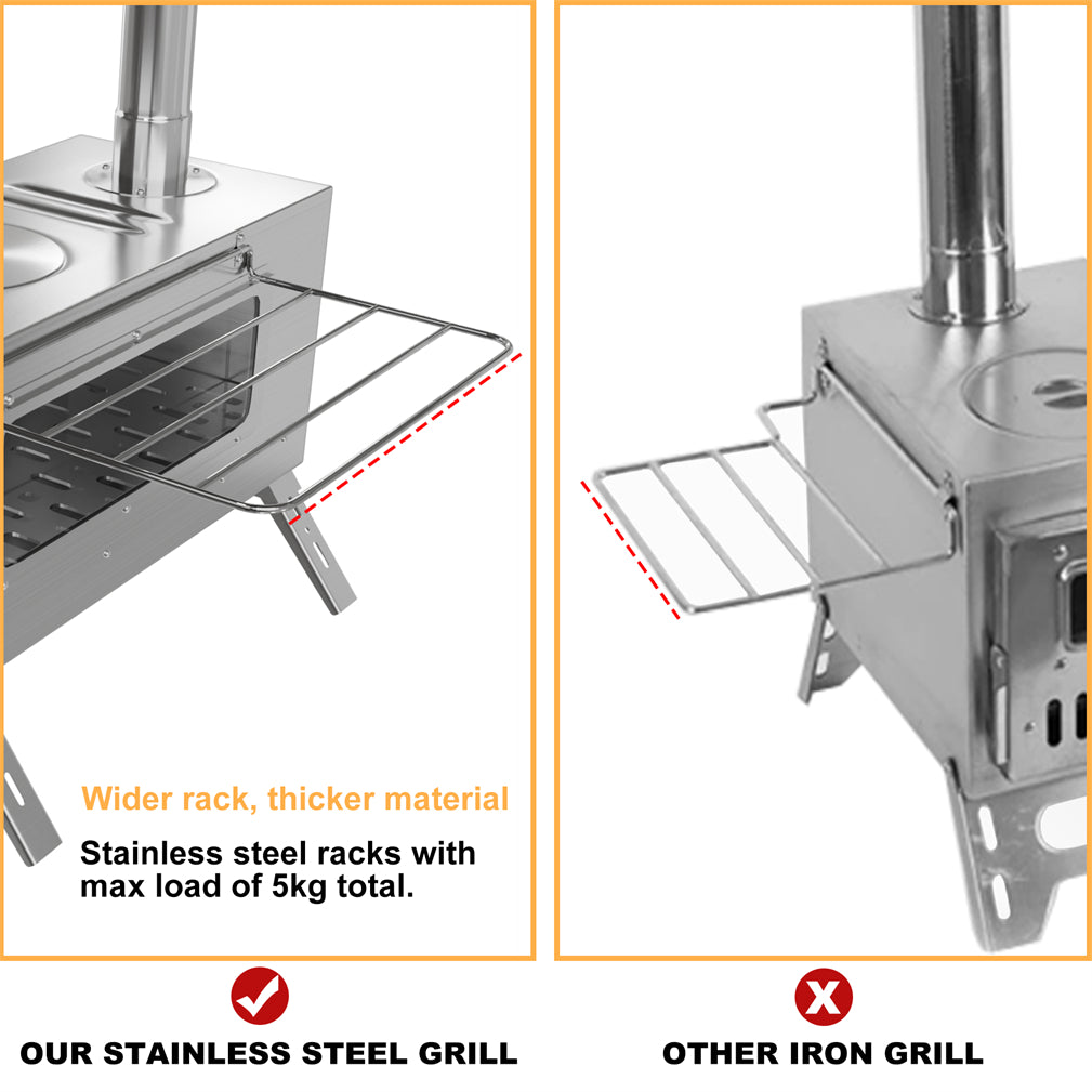 Stainless Steel Portable Camping Wood Stove Tent Stove w/ Chimney Pipe