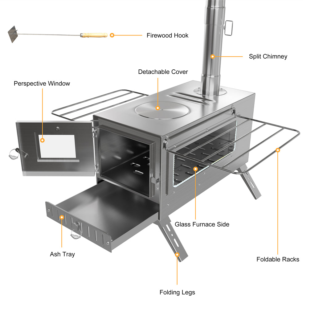 - Detachable chimney pipes allow for custom heights based on space and preferences.
