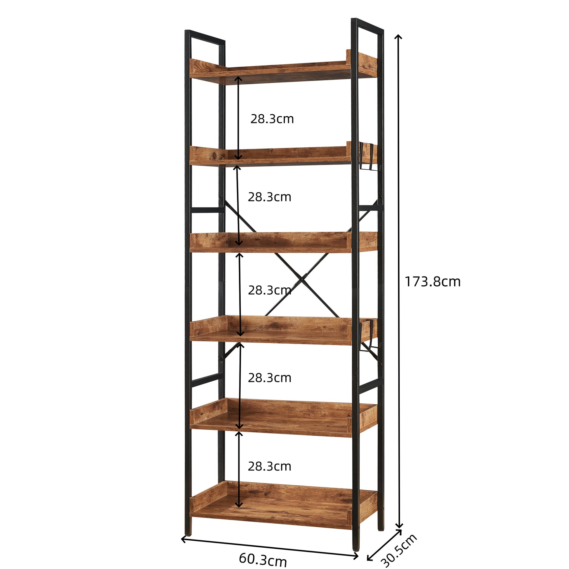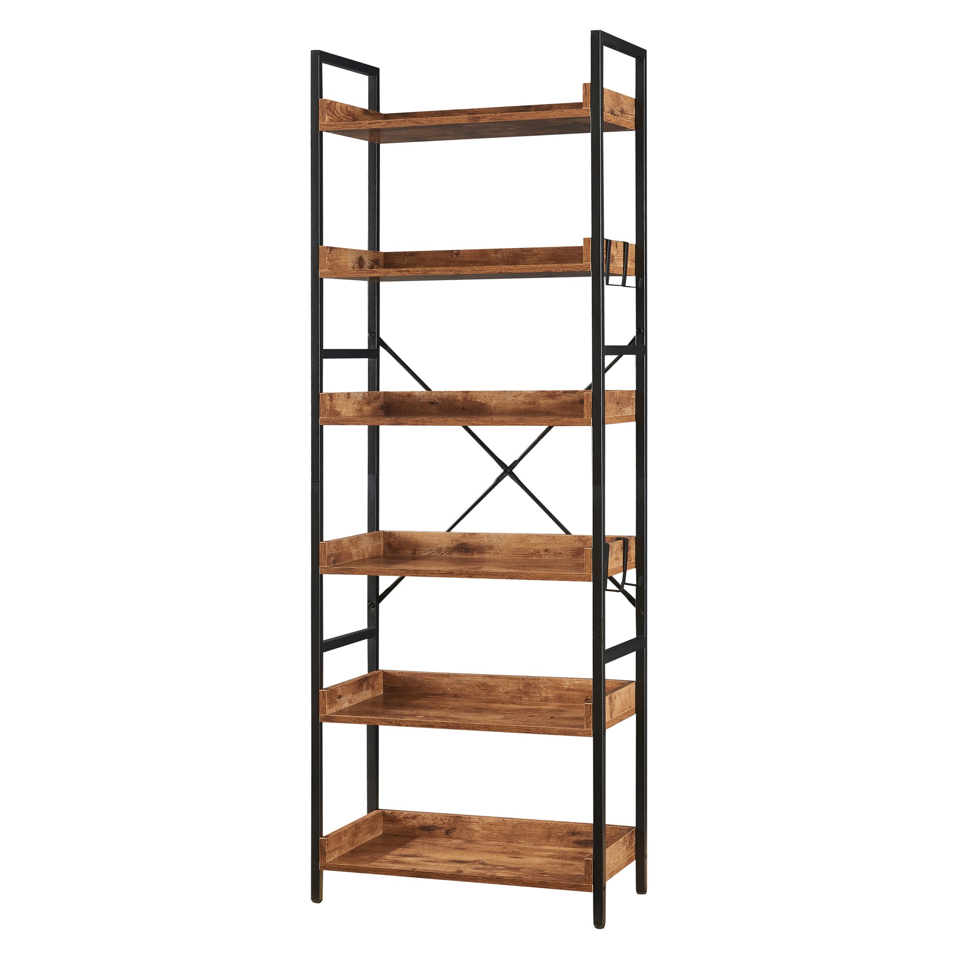 Tall Bookshelf Industrial Bookshelf, 6 Tier Bookcase, 6 Tier Open Display Storage Rack Shelves for Home, Rustic Brown