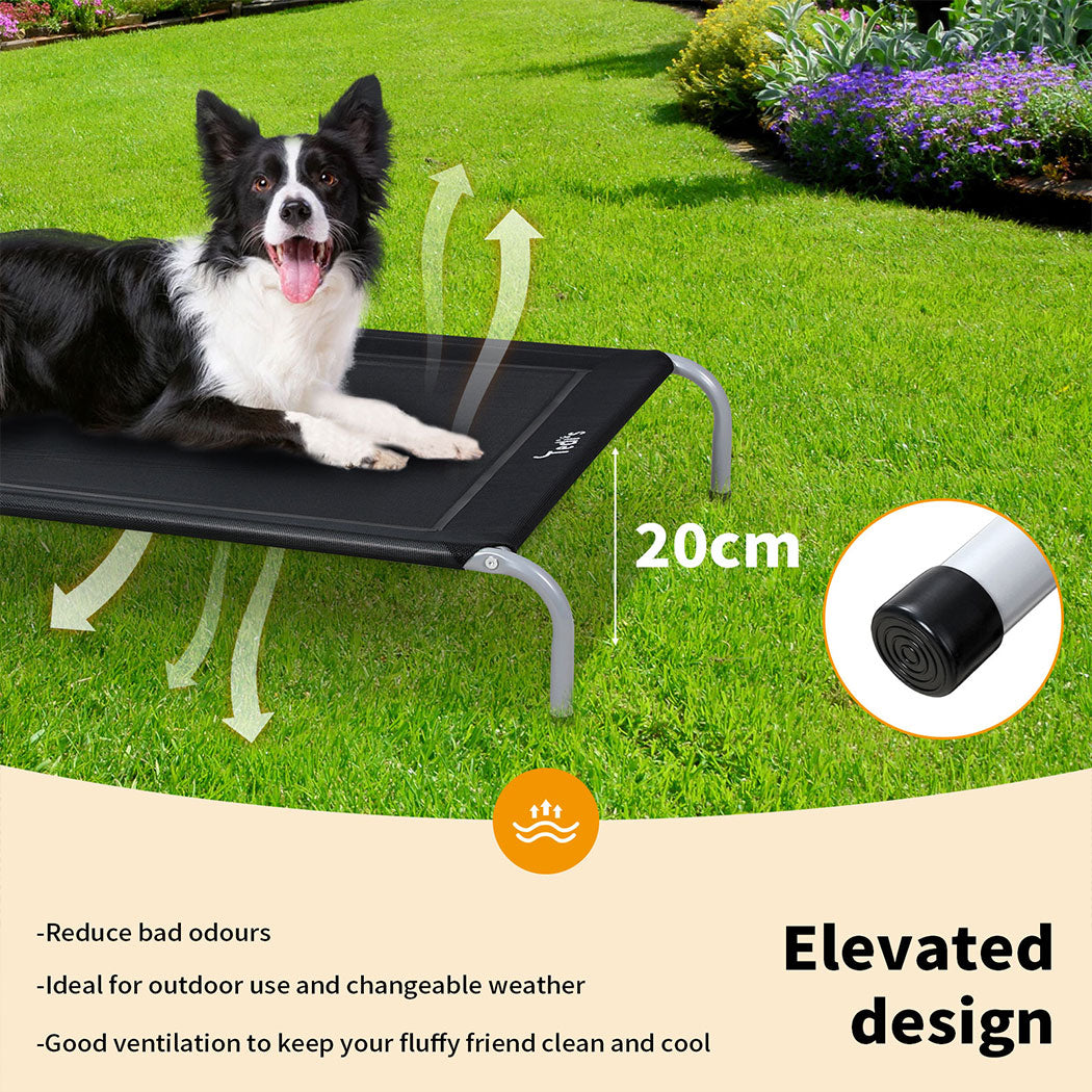 ---【Cooling Large Elevated Dog Bed】This elevated dog bed lifts your pet 20 cm off the ground, keeping them clean and cool by protecting them from wet, muddy grass. The raised design of the outdoor dog bed promotes air circulation, providing a refreshing, comfortable space, especially on hot or rainy days.