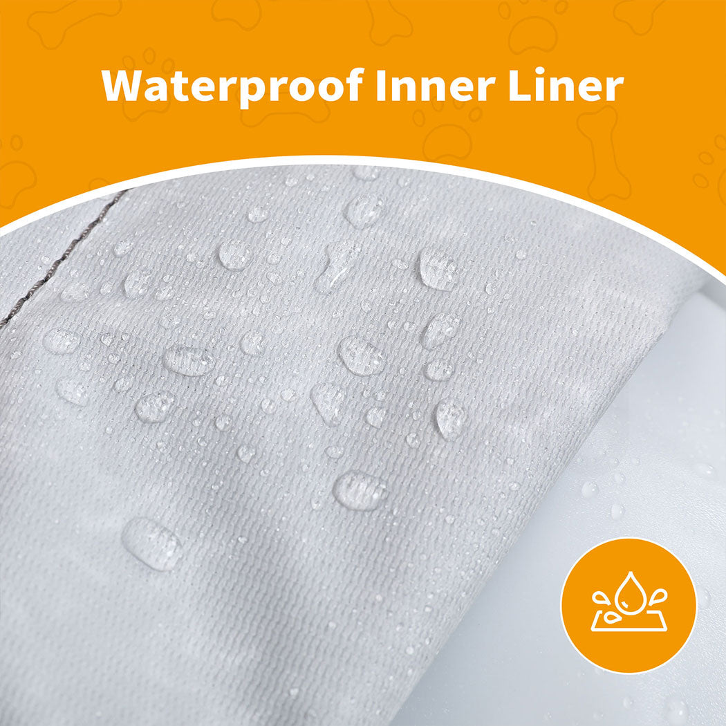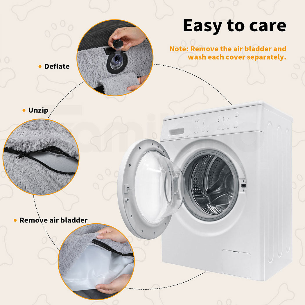 Designed with convenience in mind, the waterproof inner liner of the washable dog bed prevents any liquids from soaking through, making it easy to clean. The removable cover can be machine washed—just remember to remove the inflatable cushion before washing.