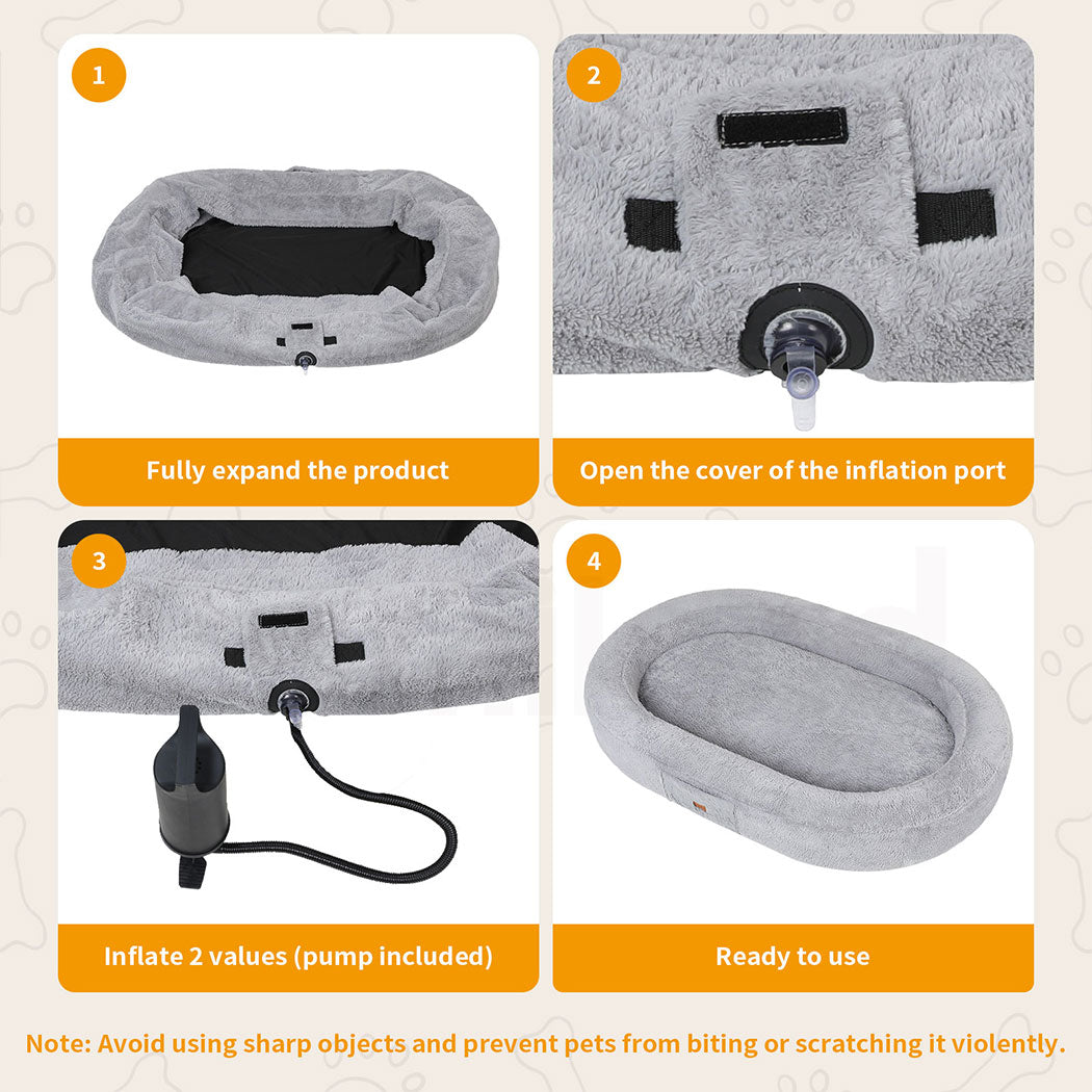 --【Washable Dog Bed】With a waterproof inner liner, you can rest assured that cleaning up after accidents is hassle-free. The removable, machine-washable cover makes maintenance a breeze—just be sure to remove the inflatable bladder before washing, as it’s not washable.