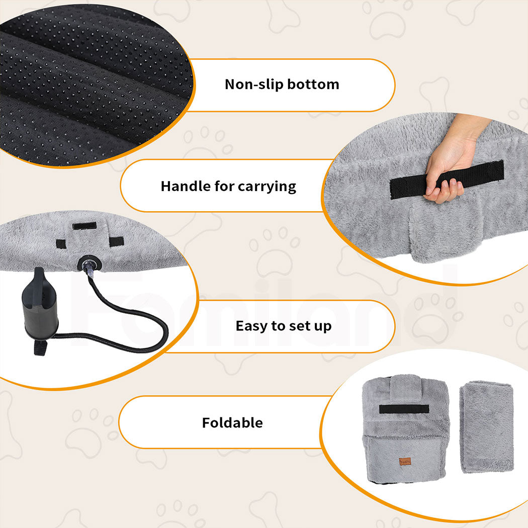--【Comfy Design】The extra-large dog bed features a soft, cozy fur outer cover, creating a plush surface for both you and your pet. The PVC inflatable inner bladder can be easily adjusted for the desired firmness with the included pump, ensuring a supportive yet comfortable sleeping experience.