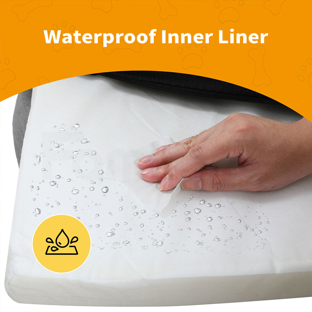 --【Comfortable & Washable Dog Bed】The waterproof inner liner protects the foam by preventing urine from penetrating, keeping it dry and mold-free. The removable covers are machine washable, making it easy to maintain a fresh and clean bed. Please note, the inner foam is not washable.