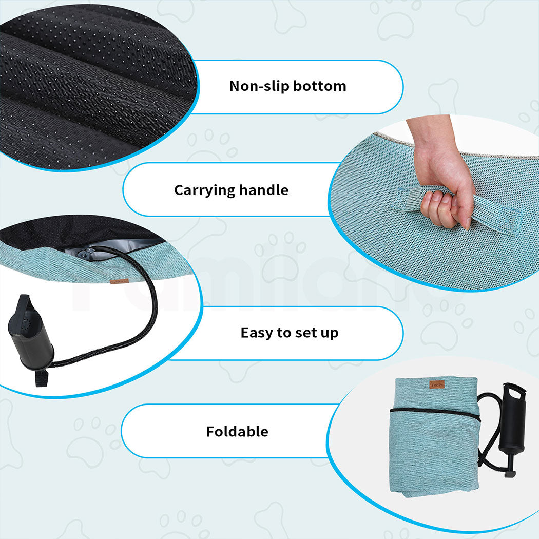--【Comfy Inflatable Dog Bed】Say goodbye to collapsing pet beds! Our inflatable cat bed comes with an air pump, allowing you to easily adjust the inflation level to provide the ideal support for your pet’s comfort.