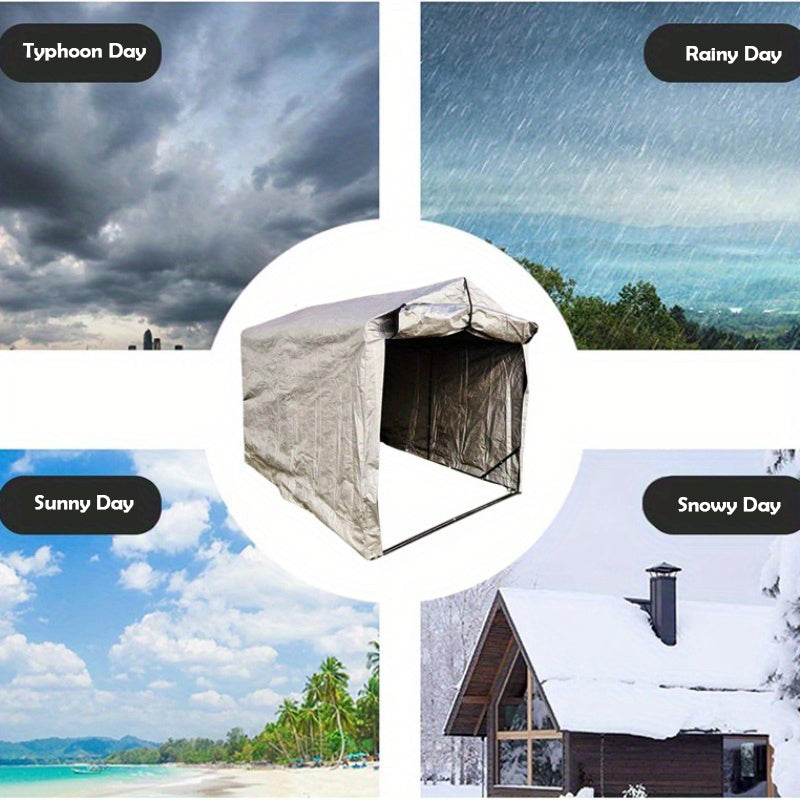 Protect your bicycles in all weather conditions with this durable outdoor bike storage tent. Designed with a **waterproof and UV-protective cover**, it shields your bikes from rain, snow, harsh sunlight, and even strong winds. The spacious interior fits **about 3-5 standard bicycles**, making it ideal for families, commuters, or cycling enthusiasts. Built with a **sturdy steel frame** and a **weather-resistant tarp cover**, this portable shelter is easy to set up and provides reliable protection year-round. Perfect for backyards, garages, or outdoor spaces where secure bike storage is needed.